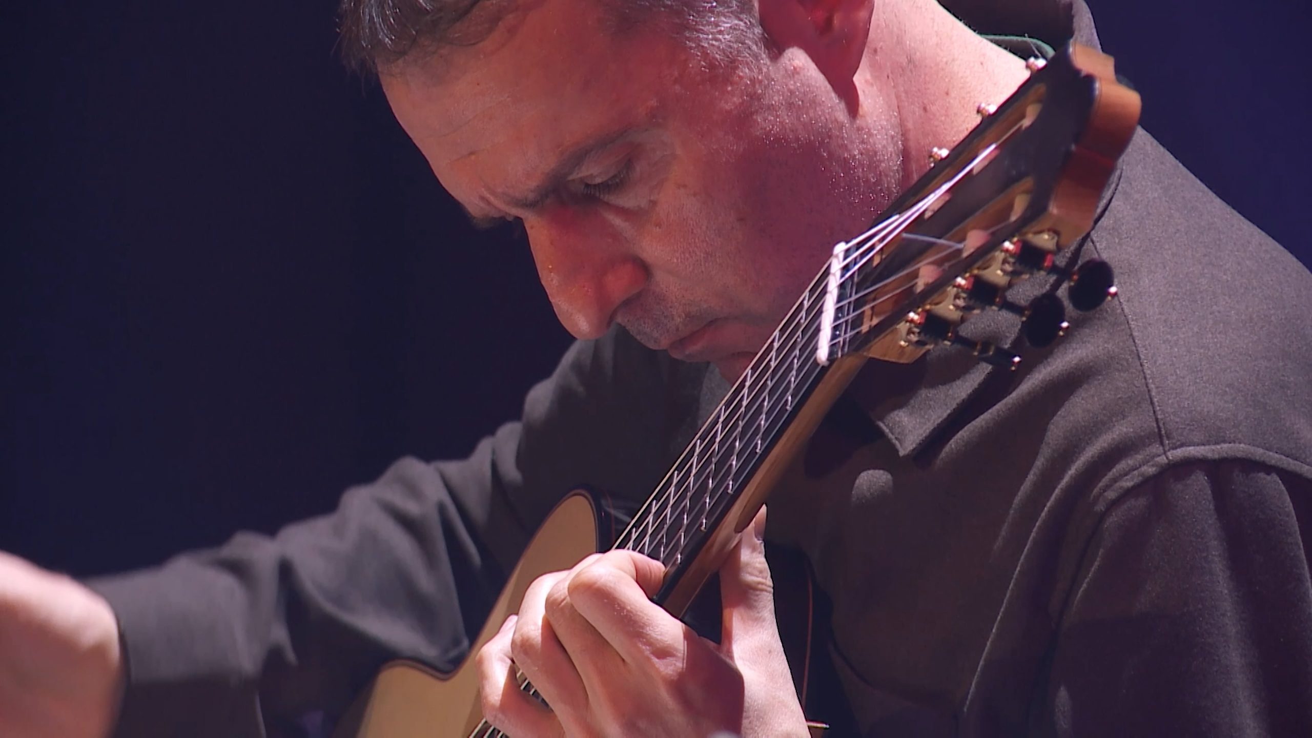 The wide inspiration of his musical language is the result of a subtle use of the forms, an endless and original rhythmical search and a colour work which leads the guitar to explore new territories and sonorities.